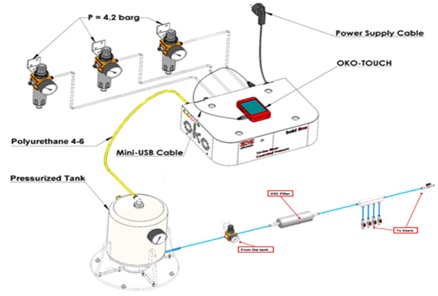 •It is operated by a user friendly 3.2’ touch screen to define the desired gas concentration.
