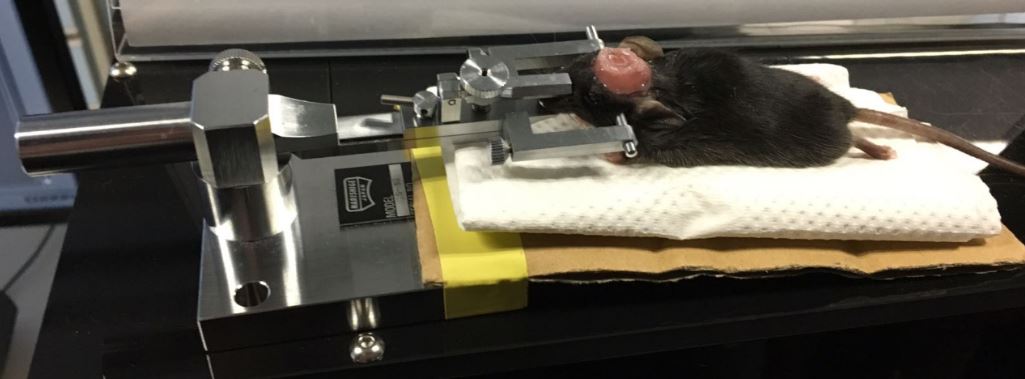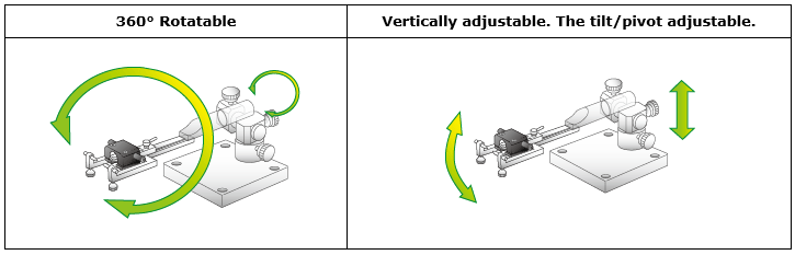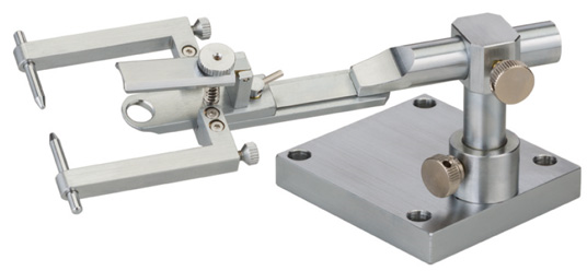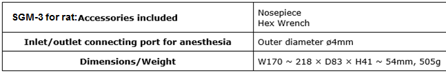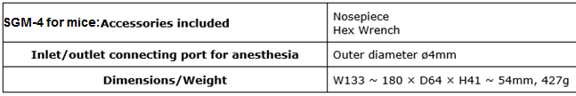 This clamping method is based on 3 point fixation (mouth, nose and ear) that makes the stable fixation. The nosepiece can be detachable and changeable by using the dedicated anesthetic mask, and it will be easily moved onto the experiment with use of anesthesia. By attaching the holding instrument to a single bar, it is enable to fix the head stably and allows the head angle to be freely adjusted through 360°. The shape and functions are simple, yet this holder can be used for many different purposes. The SGM-3 is for rats. The SGM-4 is for mice. The SG-3N (for rats) and SG-4N (for mice) without the accessories of anesthetic mask and tilt adjustment mechanism are also available.