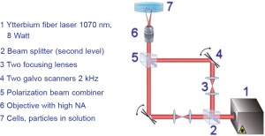 MMI CellManipulator: A powerful optical multibeam tweezers system based on the mechanical forces arising from a strongly focused laser beam. It enables comfortable, ultra-precise and contact-free manipulation of microscopic particles, single or living cells, or subcellular organisms and the measurement of intracellular activities. Thus, it can hold, move, rotate, join, separate, stretch or otherwise manipulate up to 2 x10 microscopic objects simultaneously or separately in three dimensions. The wavelength of the laser does not interfere with the integrity of living specimens. Cell sorting and cell positioning can also be accomplished together with the quadrant detector allows routine force-distance measurements or viscosities at sub cellular level, so called Force Spectroscopy. Even a feedback module is available for isometric force detections and force clamping. Due to multiple ports and dual-level laser integration, the seamless use of different modules and imaging technologies is possible and can be mounted on numerous brands of microscope from entry level, mid-range to high end.