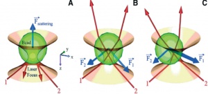 C: Gradent force: When the bead or cell is literally centered in the beam, the net force points toward the focal point of the beam.