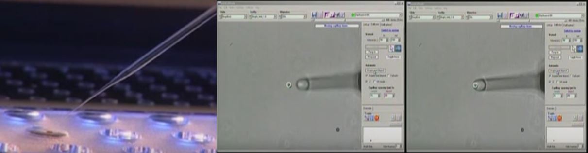 A glass capillary is used to aspirate the cells of interest directly. This is controlled by a high precision 3D robotic arm and ultra precise cell pump. Both can be used in full manual mode, or semi or fully automatically. More adherent cells can be collected by reversing the position of the capillary and lowering it by a few microns to allow the cells to be released by scratching and pumping simultaneously.