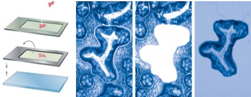 •Positive sample inspection: isolation of the target area occurs in the same relative position as on the slide. The morphology of the sample remains 100% intact and damages of the surrounding tissue are prevented. Reproducible results are achieved easily and effectively. This is excellent for auditability and accurate quantitative results.