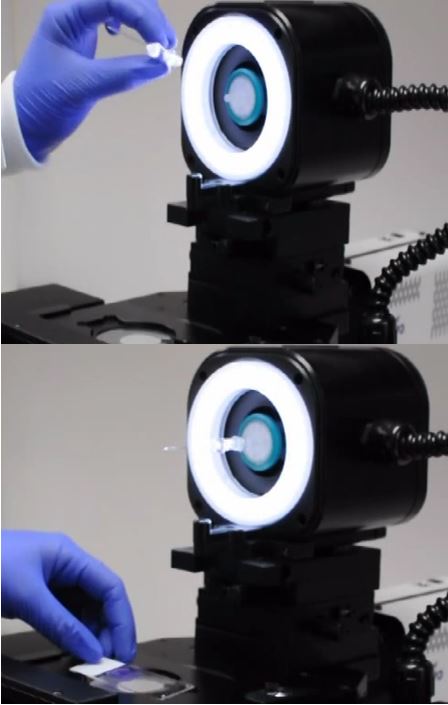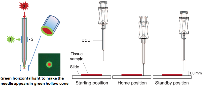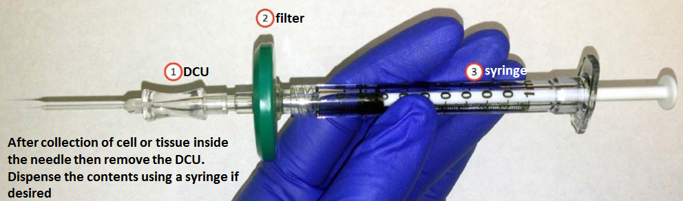 1. CIU uses syringe to dispense collected cell or tissue from DCU to the conatiner