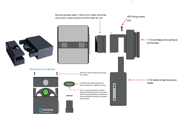 OPTOSPIN: Fast spinning and stepping filter wheel for both excitation and emission path