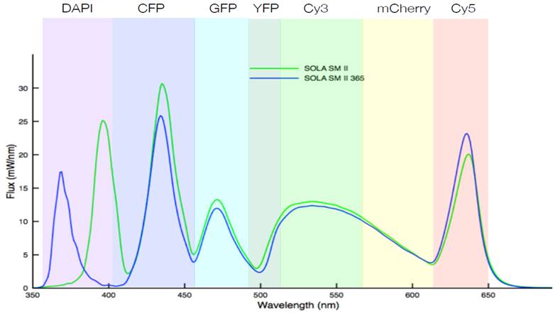 Wavelength Range:380–680 nm (SOLA SM II and SE II) or 350–680 nm (SOLA SM II 365 and SE II 365)