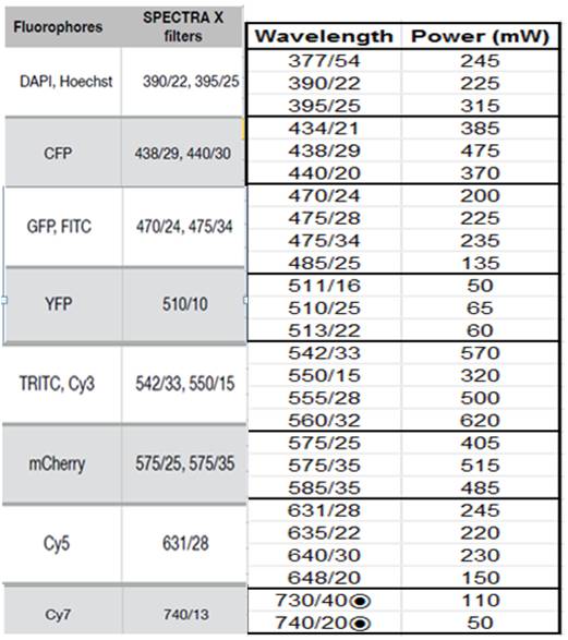 •Output Power:~50-500 mW power per color band through a 3 mm dia LLG;~20-200 mW power per color band through a 1 mm dia optical fiber