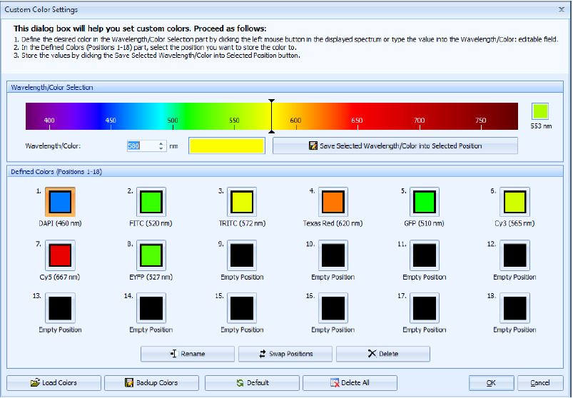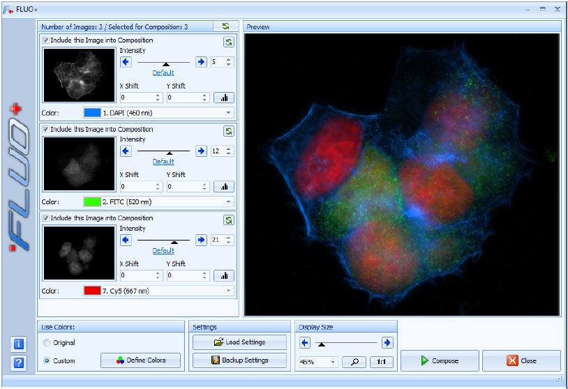 •Color of each of the fluorescence images can be user defined