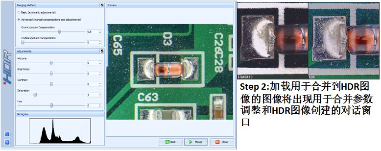 High Dynamic Range高动态范围(HDR)可选模块:允许您查看微观或立体显微镜样品的整个动态范围。传统的非HDR数码相机只能提供样品亮度范围的一小部分,图像的较暗部分中的信息丢失,以及在样品的饱和或极亮区域的信息。具有有限曝光范围的显微照相机会导致高光或阴影中的细节丢失。 该模块可用于创建使用显微镜获取的静态样本的高动态范围图像,用于宏观图像以及标准摄影。