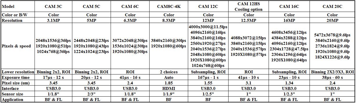 We offer CCD, CMOS, sCMOS & EMCCD cameras:
