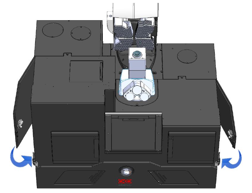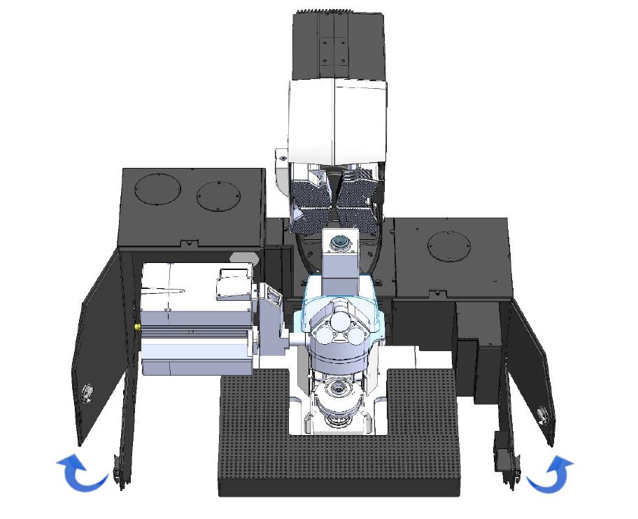 •Sliding doors on the front and side panels allow full and easy access to the microscope