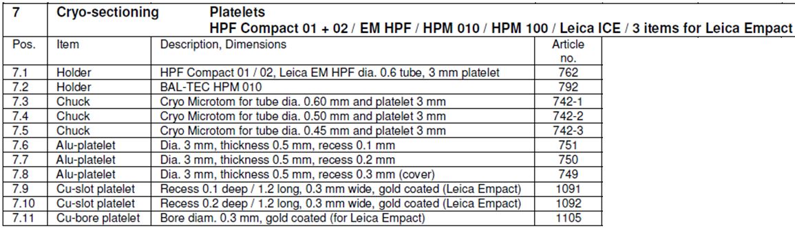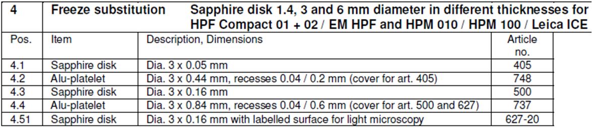Consumables for all high pressure freezers