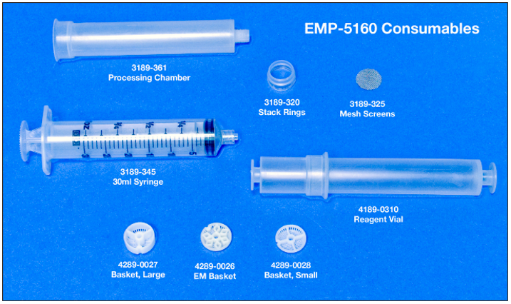 >两个经过验证的样品处理系统:带有可拆卸筛网的传统卡环或多隔室篮。两种类型都包含所有工具。