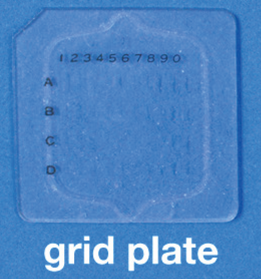 B)电子显微镜样品网格篮用于染色,规格网格/篮子。