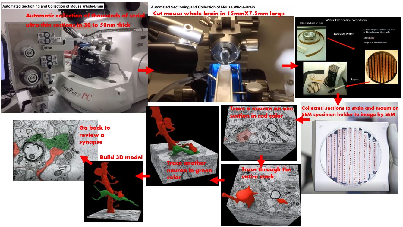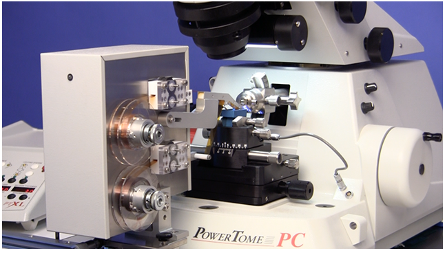 The ATUMtome tape collecting ultramicrotome is now available for high resolution array tomography of biological tissues. Thousands of utra-thin sections with a thickness of 30nm can be automatically collected on 8mm wide Kapton tape for SEM imaging and sebsequent large tissue and whole organ 3-D reconstruction. The ATUMtome’s tape collecting part of the system (ATUM) is under license from Harvard University where Professor Jeff Lichtman, PhD, MD, and his team designed the instrument to help collect ultrathin sections to help reconstruct the brain’s neural pathways — a precursor to one day mapping the entire human brain.