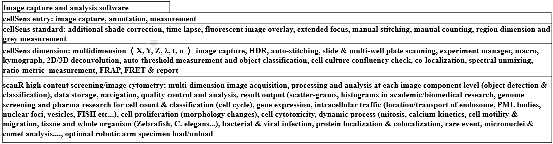 Automated Live Cell Workstation: https://www.olympus-lifescience.com/en/microscopes/inverted/ixplore-pro/ & https://www.olympus-lifescience.com/en/microscopes/inverted/ixplore-live/