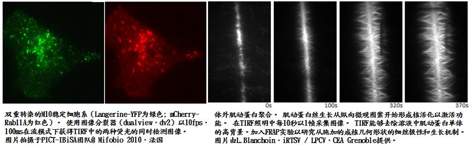 全内反射荧光(360°TIRF)显微镜是观察紧贴盖玻片表面的样本的理想技术,因为它提供了最高的轴向分辨率(根据入射角在60到300nm之间)。 这种技术涵盖了很多的应用领域,如单分子跟踪,分泌过程成像,细胞膜与基质组分或肌动蛋白丝行为的相互作用