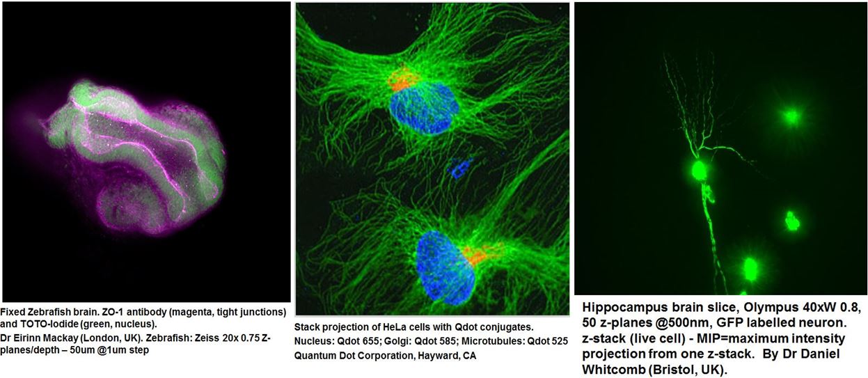 样品荧光染色:特异性荧光染料,免疫荧光抗体标记,荧光原位杂交,荧光蛋白,活细胞中显微注射荧光标记。